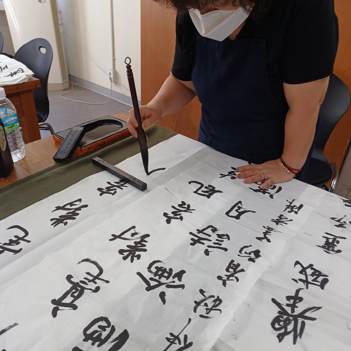 휘호(揮毫)대회, 휘(揮)는 휘두르다, 호(毫)는 붓을 뜻하는 글자입니다. 글씨를 쓰거나 그림을 그리는 것을 말하는데 붓글씨와는 의미가 좀 다릅니다. 서예교실은 보통 한글, 한문, 사군자교실로 나누고 대회도 그렇게 구분합니다. 붓글씨대회라 하지 않고 휘호대회라 하는 이유입니다. 이번 토요일, 9월 17일 10시 30분에 영등포문화원에서 구민휘호대회를 엽니다. 내일(9월 16일)까지 접수가 가능합니다. 방문하지 않고 전화로도 가능합니다. 전시실에서 간단하게 개회식을 하고 1층 전시실과 3층 각 강의실에서 진행합니다. 개회식에서는 징을 치며 명제(命題)가 펼쳐지는데 명제 글씨는 정헌만 선생님께 부탁드렸습니다. 오늘 강의실에서 도구를 전해드렸습니다. 수강생들이 수업 연습과 복습이 필요하여 요청할 때는 연습실이든 빈 강의실이든 어떻게든 장소를 마련해 드리고 있습니다. 추석 지나고 이번 서예대회에 출전하시는 수강생이 연습 공간을 찾으셔서 빈 강의실을 마련해 드렸는데 하루도 빠짐없이 열심이십니다. 좋은 성적 내시기를 바랍니다. 내일까지 휘호대회 접수가 가능합니다. 전화 주십시오. (전화 846-0155~6)