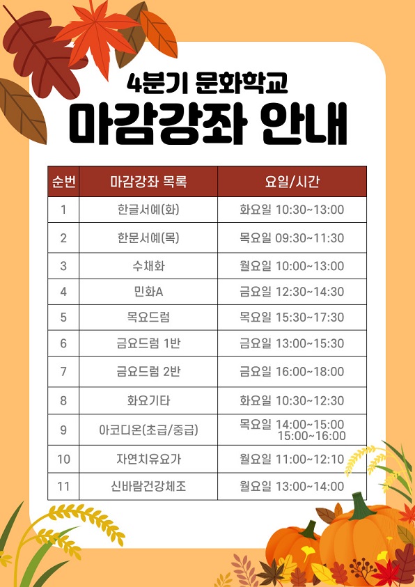 대기자 등록은 문화원 사무국으로 연락 부탁 드립니다.