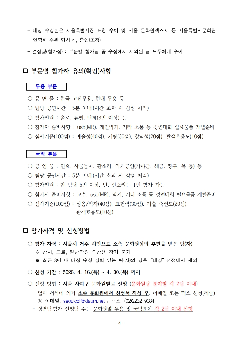 2026 서울문화가족 무용 및 국악경연대회 알림