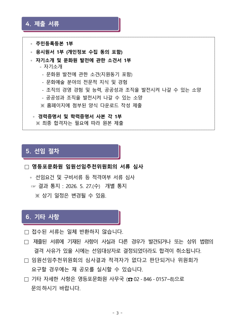 582 영등포문화원 직원(계약직) 채용 합격자 공고 문화원 2026-03-10