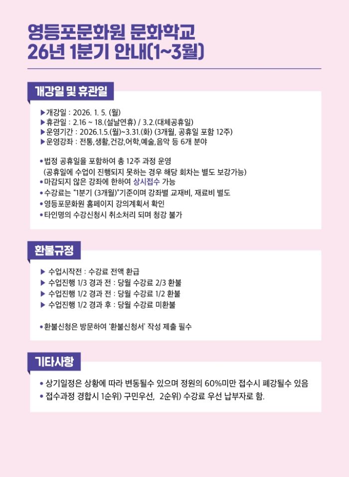 565 2026년 1분기 영등포문화학교 접수일정 문화원 2025-11-27