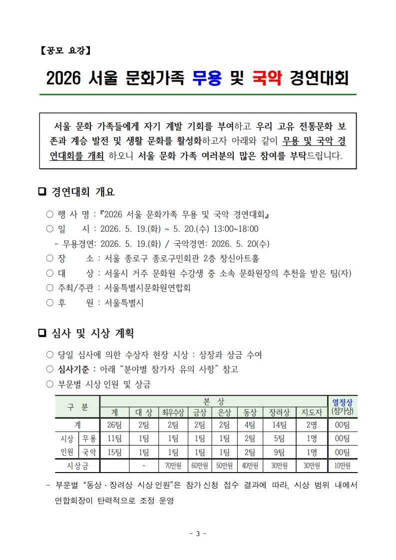 2026 서울문화가족 무용 및 국악경연대회 알림