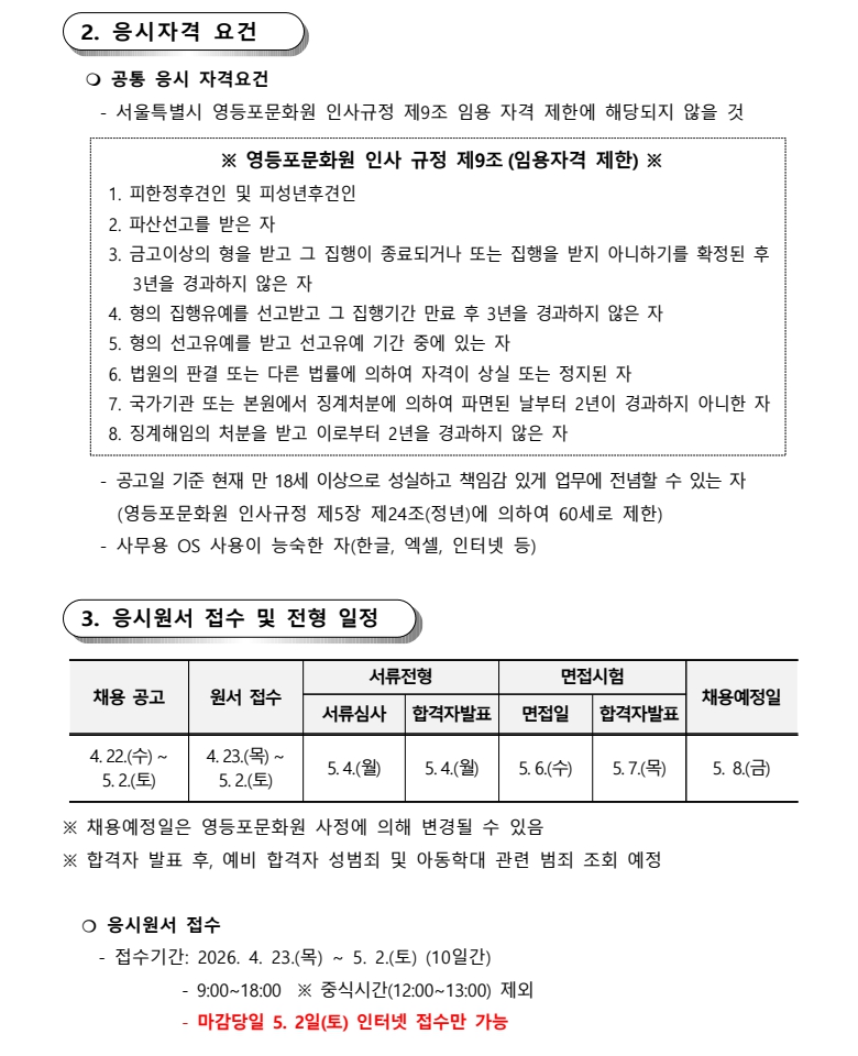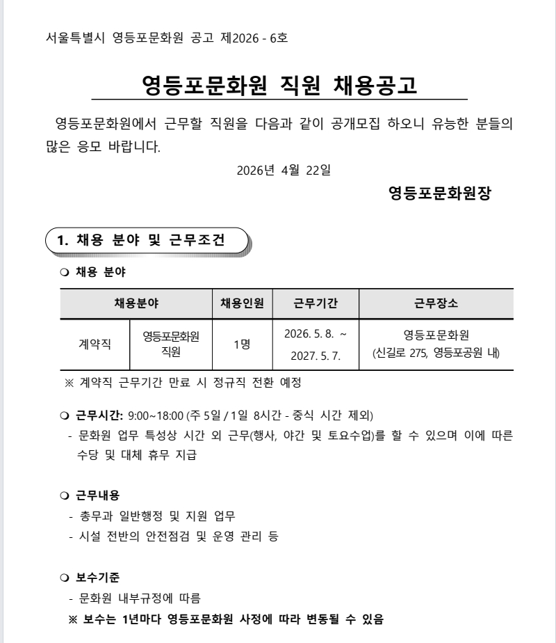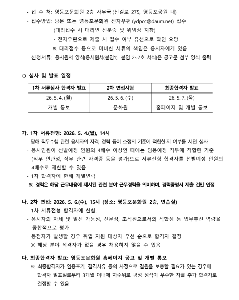 583 영등포문화원 직원(계약직) 채용 합격자 공고 문화원 2026-03-10